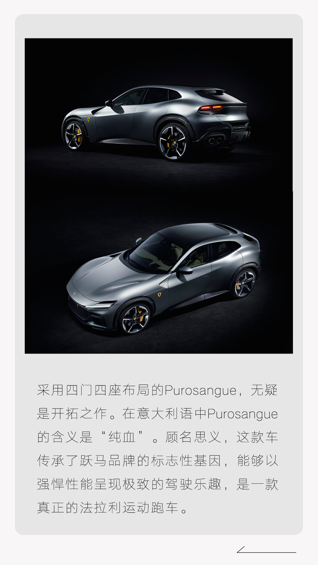 Purosangue无疑具有划时代的意义,为沉闷的汽车市场带来震撼的轰鸣,而它为人们提供的仍然是那份已经延绵75年的初心——极致而纯粹的驾驶体验。