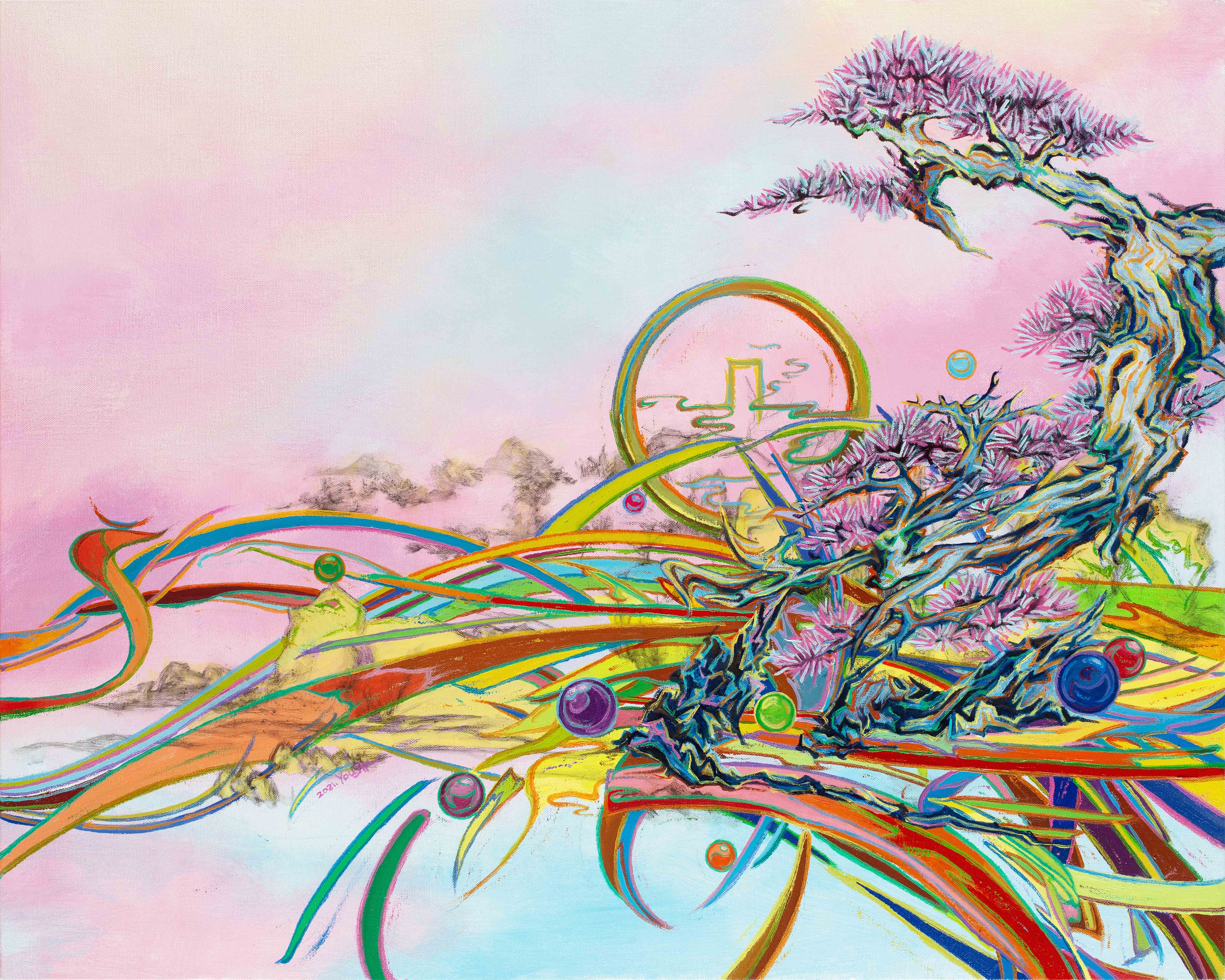 上:由金,《餐霞漱瀣》,布面油画,丙烯