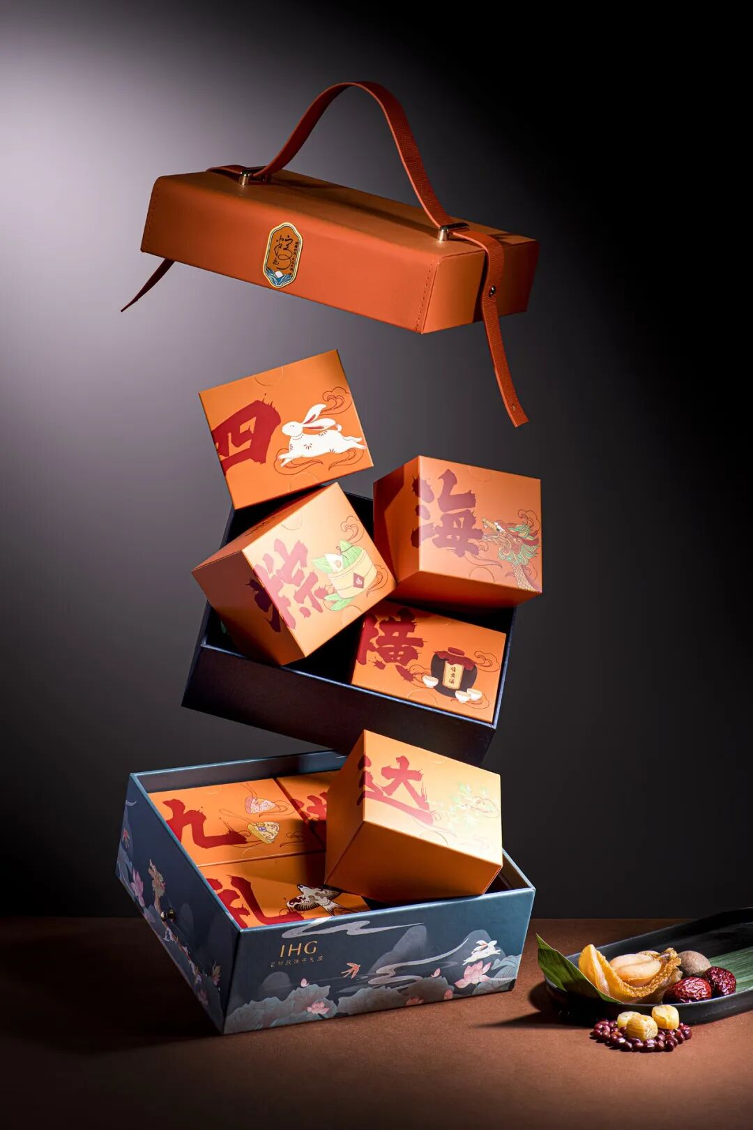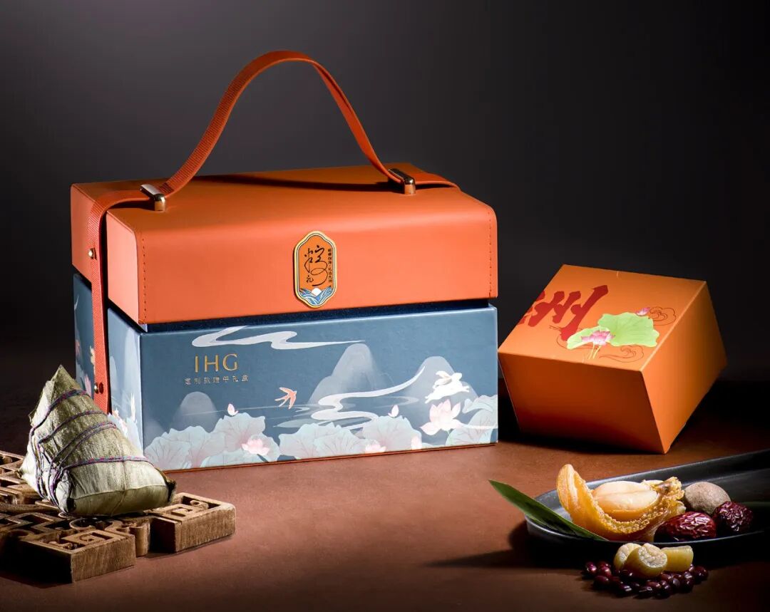 暮春浅夏,日暖芳菲,悠悠端午,浓浓粽香。北京三里屯通盈中心洲际酒店推出了极简轻奢粽子礼盒,清爽简约的灰粉方形外盒,搭配低调奢华的烫金浅灰内里绒布袋,粽香浓情,溢满醇香。
