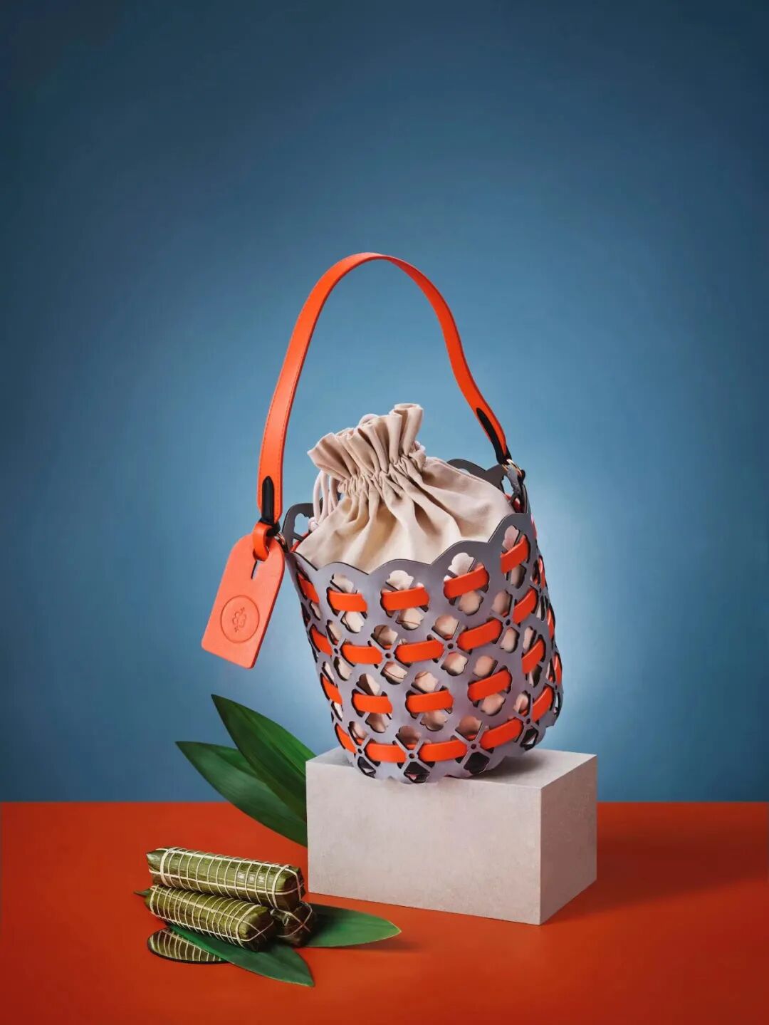 此次北京丽晶酒店出品别有新意,将粽子放入时尚小包里,既是端午祝福,又是搭配单品,高饱和橙色与蓝色配以经典编织纹路,勾勒出粽子的本真轮廓,重新定义跨越时代的粽子风格。