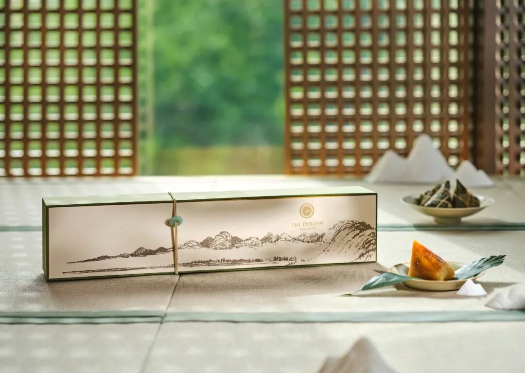 北京璞瑄酒店推出端午“瑄粽礼盒”,其延续以盛名画作《富春山居图》为设计灵感,全盒运用端午青绿和雅致白色,当礼盒在手,一幅“隐于山水间,观自见天地”的都市桃源景致便自然而写意地呈现眼前,传统中又见新意。