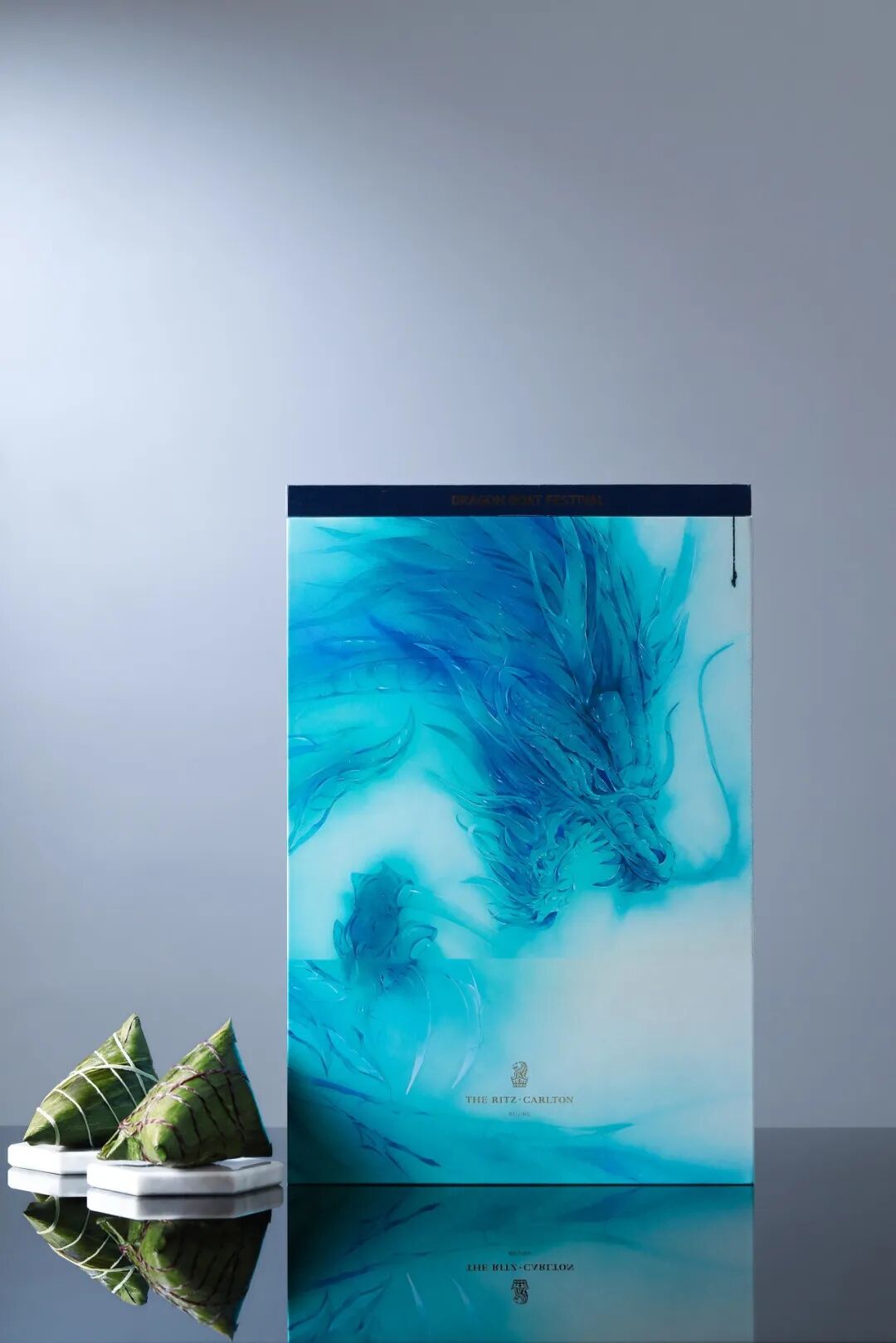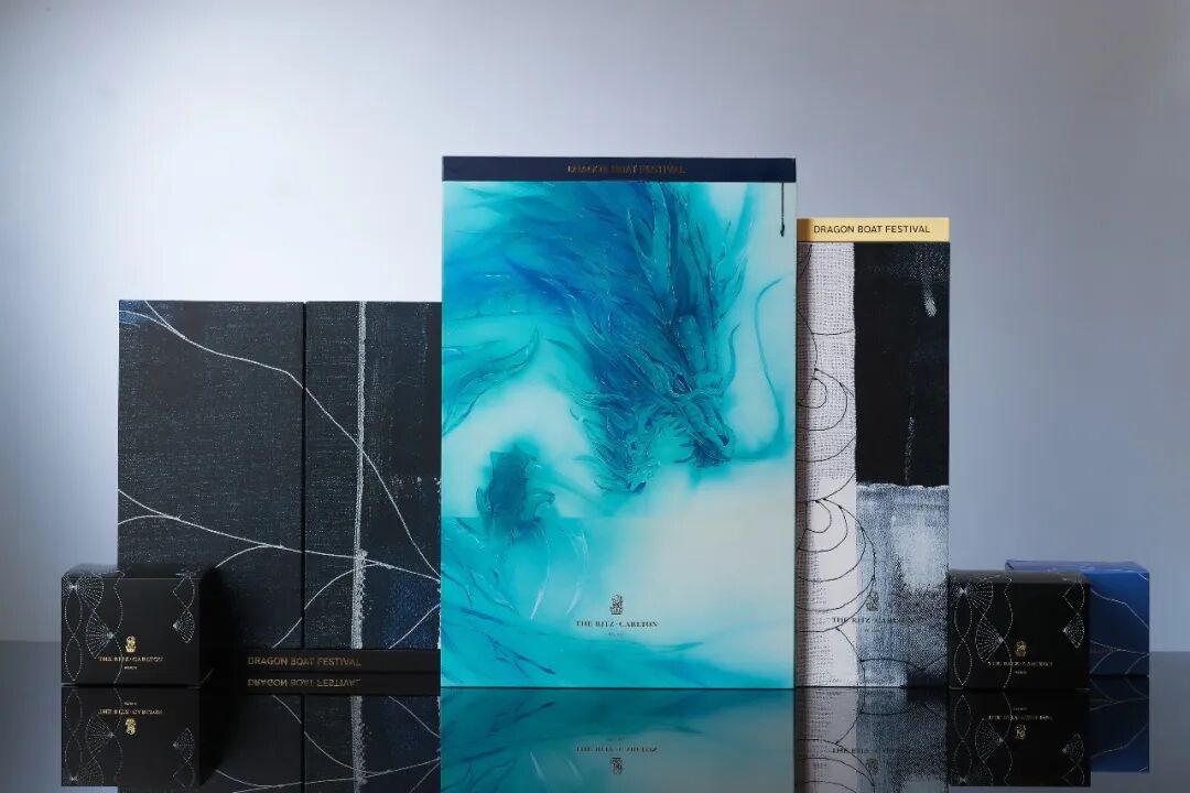 此次艺术跨界端午礼盒系列以沉稳典雅的藏蓝色为主色调,并巧思运用牛仔布材质包裹,新潮而摩登,凸显前沿设计理念。主视觉则是刚健有力的蓝色神龙画像,传递祥瑞与积极能量。搭配经验丰富的北京丽思卡尔顿酒店团队精心挑选多种口味的甜粽与咸粽,以蜜香红枣粽、健康五谷杂粮粽、清水原味粽、传统鲜肉粽的4粒装为基础,此外还有鲍鱼鲜肉粽及藜麦芋泥粽的礼盒可选,皆是彰显珍贵心意、馈赠宾客及亲友的上乘之选。