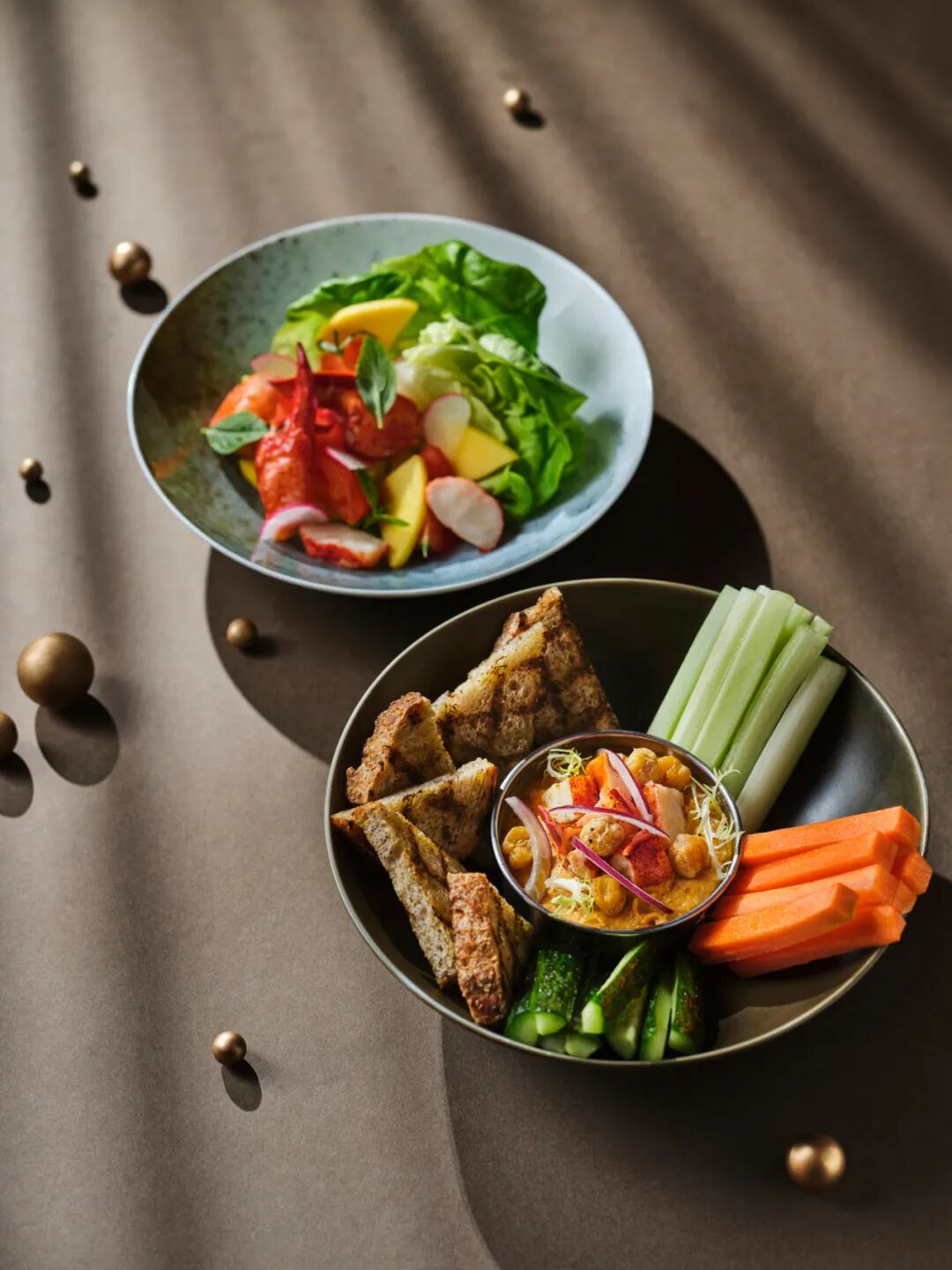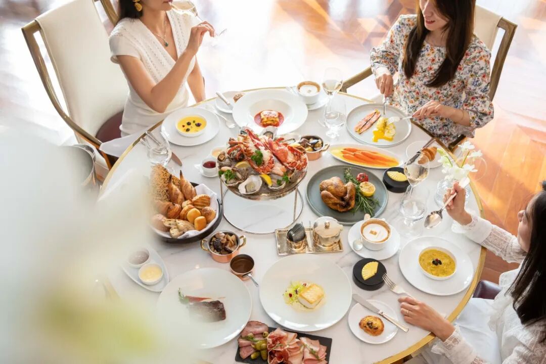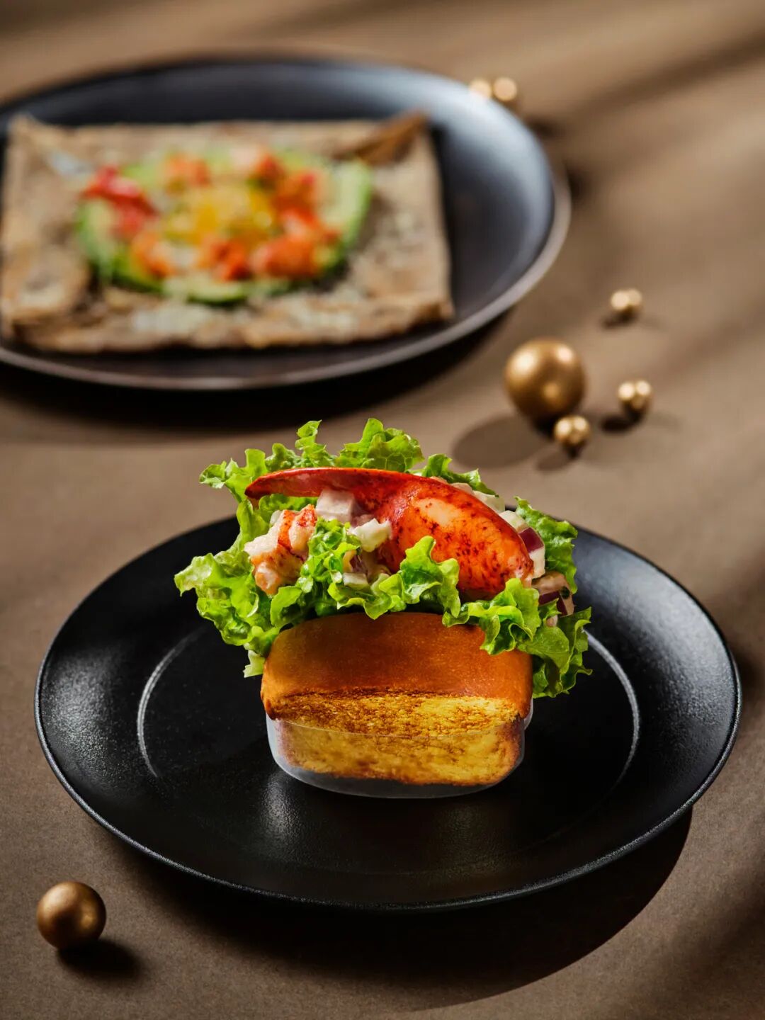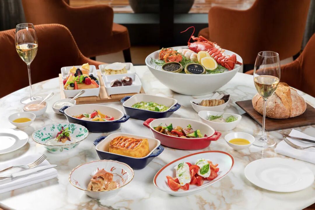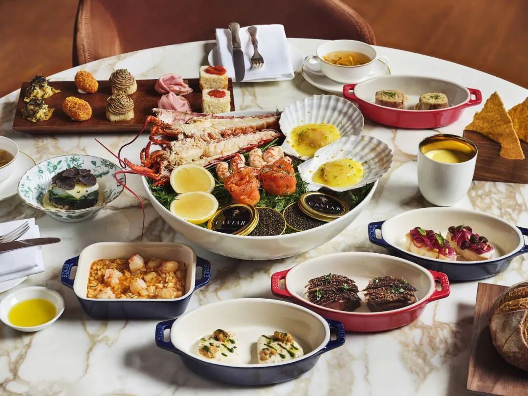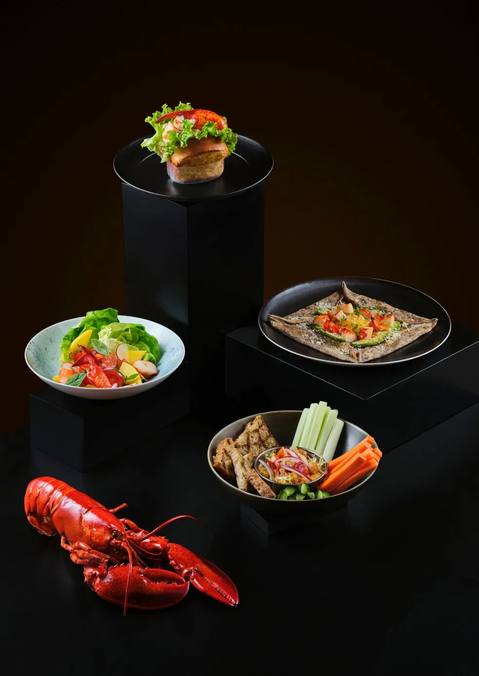 这份以波士顿龙虾为主角的分享式早午餐菜单,以龙虾芒果科布沙拉、龙虾鹰嘴豆泥、油封鸭鸭肝酱作为分享式前菜,清爽健康又能打开味蕾;奶油龙虾浓汤、龙虾牛油果可丽饼和经典龙虾三明治,多样地展现了波士顿龙虾的鲜美。餐后还有甜品车提供多样选择,惬意生活方式的仪式感就此拉开。