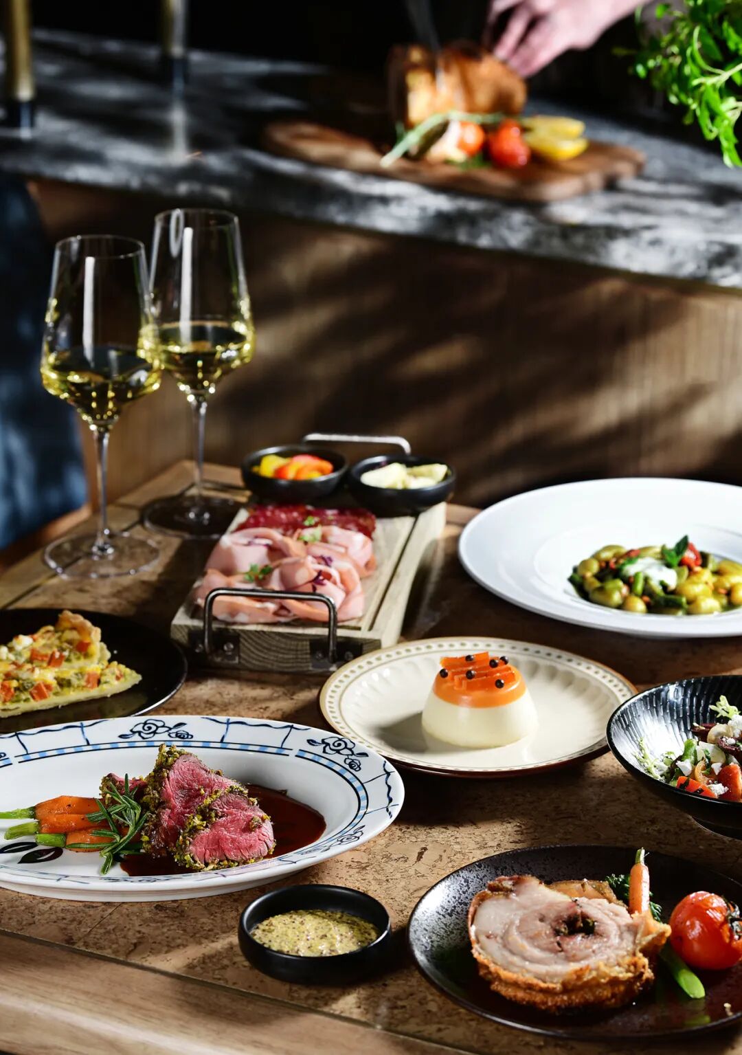 多道美味佳肴包含宝格丽鱼子酱、龙虾、蟹肉、慢煮大虾组成的海鲜拼盘,让人领略富饶多姿的地中海风情;精选的前菜冷盘,无论是番茄面包、黑松露温泉蛋还是布拉塔奶酪等意式佳肴,都能瞬间打开清新的味蕾,带来沁爽的开胃效果。可供选择的特制意面和主菜以及甜品拼盘,则展现餐厅深厚的烹饪传统与匠心技法。此外,每周还会根据主厨的安排不断出新,并包含丰富多样的软饮、香槟以及特调鸡尾酒等酒水礼遇。