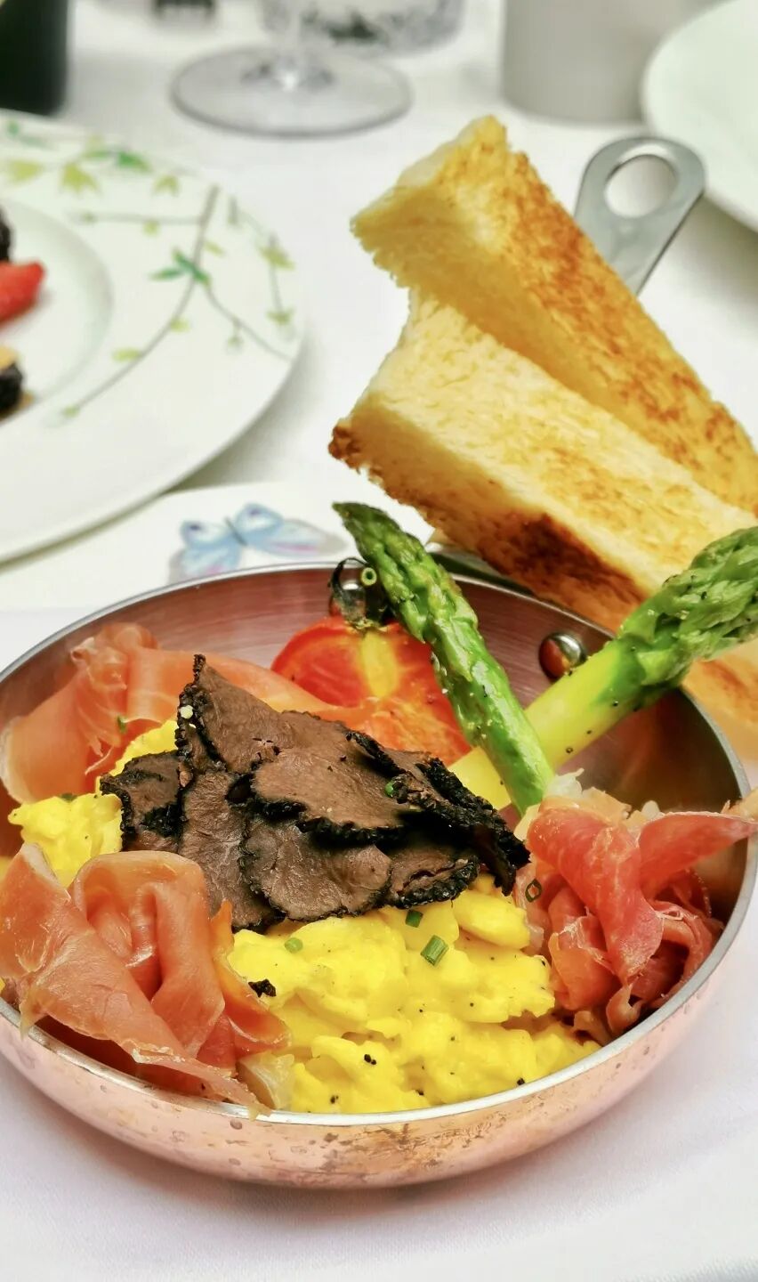 首先是波士顿龙虾、生蚝、虎虾仁、海螺齐上阵,初夏的清鲜气息扑面而来。前菜部分的精选冷切盘及文华田园沙拉的精致呈现,多款新鲜面包搭配黄油、果酱、配料,拉开美好周末早午餐的序幕。还能任选经典的蛋类烹制,包括黑松露炒蛋、温泉鸡蛋配煎鸭肝、盐渍三文鱼班尼迪鸡蛋、日式茶碗蒸配鱼子酱等。主菜部分烤伊比利亚猪柳、烤春鸡,以及现切烤美国极佳级肉眼牛排的美味令人大呼过瘾,香煎鳕鱼柳及意式肉酱千层面更是不容错过。此外的亮点是琳琅满目的甜品车,精致甜点、马卡龙、棒棒糖、蛋糕等由服务人员根据客人喜好悉数奉上,令好友相聚的周末时光甜蜜指数飙升。
