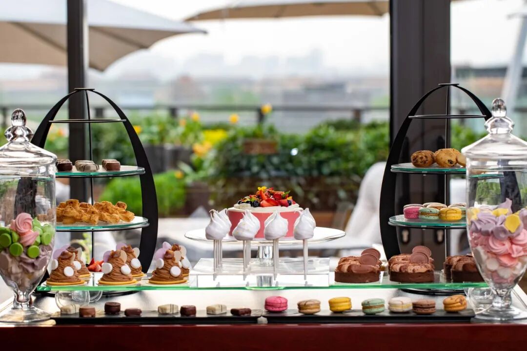 早午餐可品尝到高品质海鲜制作的招牌海鲜塔,纽约班尼迪克蛋、 英式早餐、美式煎饼、比利时华夫饼组成的精选早餐,以及包含传统意大利面、日式生鱼饭、香煎内蒙古嫩羊排、扒澳洲牛排芝士开放三明治在内的精选午餐菜单,均可随心4选1。周末美食的压轴一定是甜品,在甜品推车的加持下,让人在轻松时光备感甜蜜和浪漫。