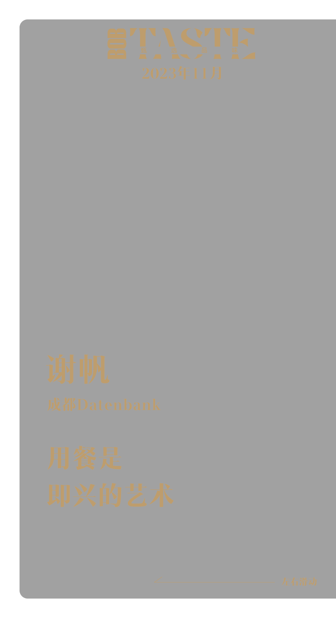 成都的味道向来充满本土的烟火气,火锅、川菜、麻辣兔头代表了天府之国的历史、记忆和感情,不过一轮以Fine Dining为风潮的饮食更新正在进行,Datenbank是艺术家谢帆所演绎的美食艺术。在谢帆眼中,食物是媒介,环境与器皿是相互理解的中介,Datenbank表达的是一个重塑食物的一种体验。而谢帆团队也专注于对食材“深度”的探索和对于东西方的体验,通过不同食材的解构、组合、碰撞、搭配,这些艺术常见的手法赋予食材更多可能。