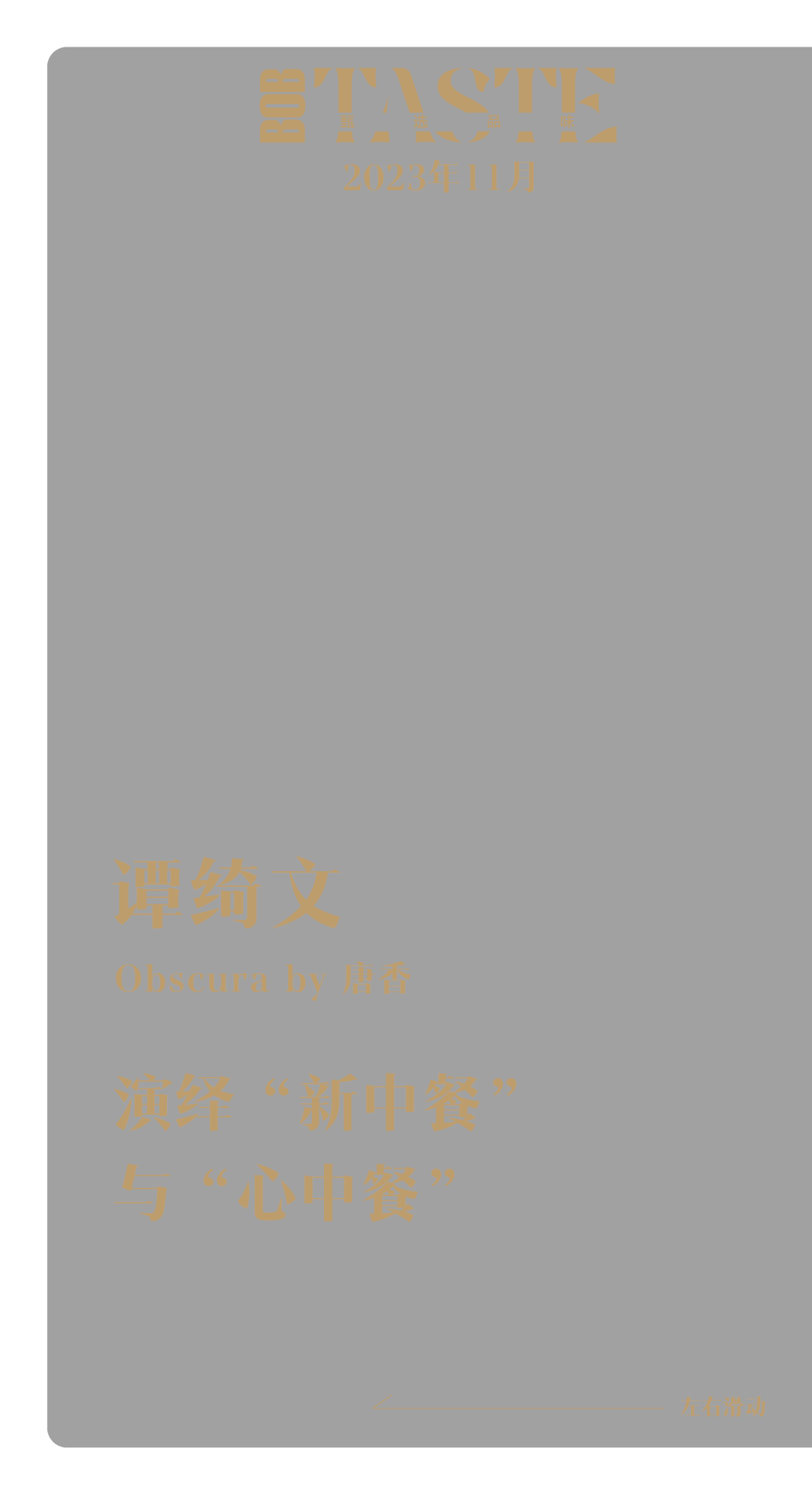 谭绮文:我每天醒来时,都有一个灵感提取的时刻。因为我觉得我们餐厅探索的主题实际上与中国所有美食文化都有关联,但美食文化又与生活息息相关,所以会让我提取灵感的可能性是无处不在的,例如便利店里的小零食、本地农家菜餐厅,或者同小区的爷爷奶奶们平时爱吃什么、爱买什么东西。我的餐厅旁边的菜市场每个季节会上新的鲜蔬菜,看各大美食类媒体所写的内容,也可以给我带来许多创新灵感。