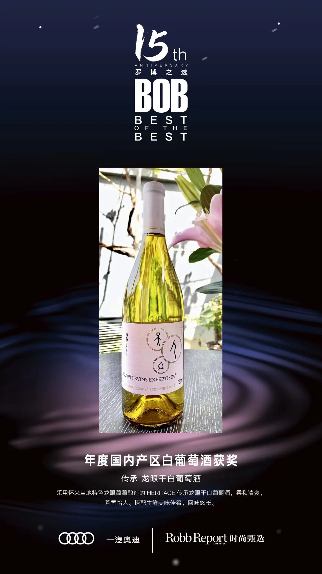 采用怀来当地特色龙眼葡萄酿造的HERITAGE传承龙眼干白葡萄酒,柔和清爽,芳香怡人。搭配生蚝、三文鱼等美味佳肴,回味悠长。