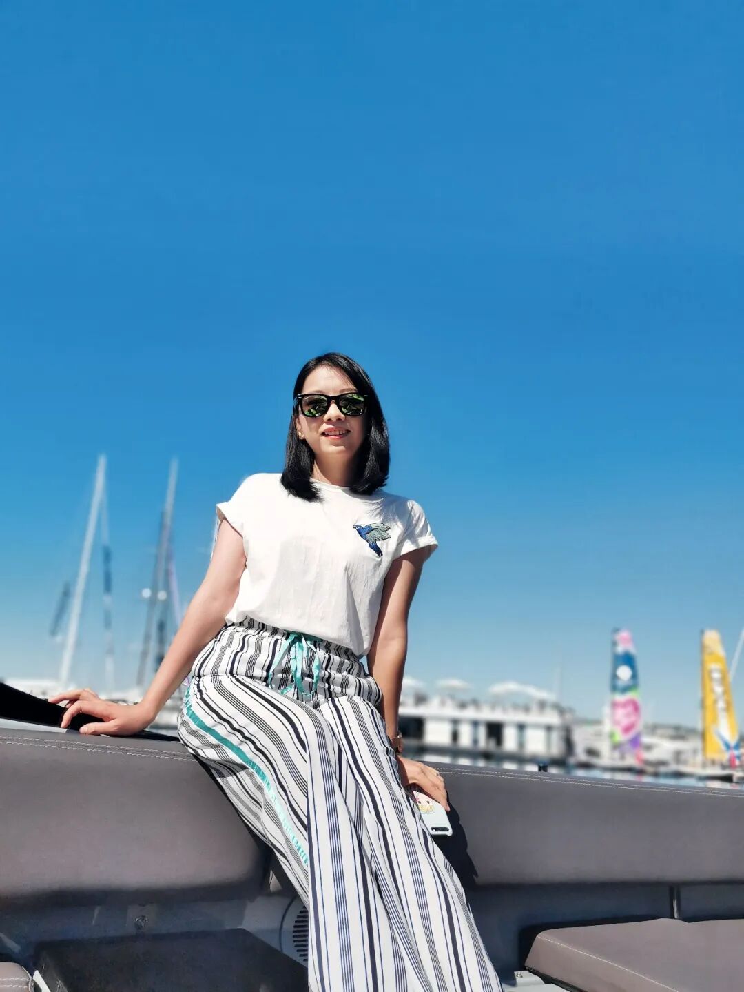 主甲板和上层甲板的内部空间由涂有纹理白漆的结构“肋骨”构成。每根肋骨都有一个集成面板,它们与20世纪60年代的航海门和舷窗相呼应。与过去古老的致敬方式相比,它们在建筑细节中更加优雅地体现出来。飘逸的奶油色窗帘和金色柚木贴面地板延续了现代主题,为经典元素注入新鲜感。装饰在原本传统的蓝白色航海条纹中引入了淡蓝色调——这又是2022年设计师对20世纪60年代游艇外观的典型认知。不用担心,大片玻璃、大理石和不锈钢的材质会将人们的思绪从60年代拽回当今社会。