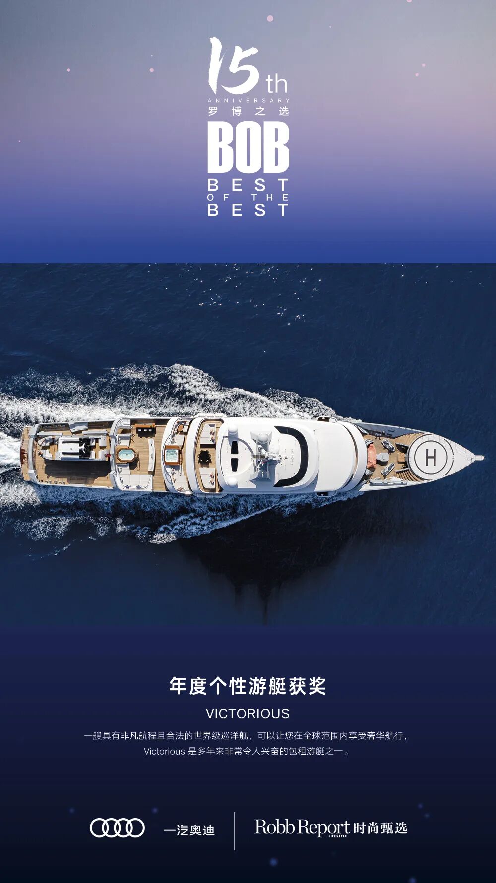 Victorious是一艘探险游艇,高达10200海里的续航能力、宽敞的娱乐空间、充足的小艇存储空间以及直升机停机坪等可以带领24位宾客探索海洋的奥秘。