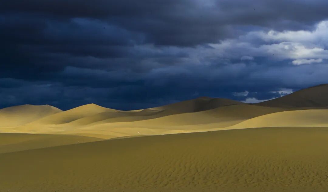 站在敦煌的高处,看着朝阳里的沙丘,线条分明。湛蓝的天空与黄沙、绿洲仿佛天地之间的画板,艺术的图画从未停止书写,从千年以前到当下一瞬,以空间到时间,定格了这条绵延河流中的瞬间。