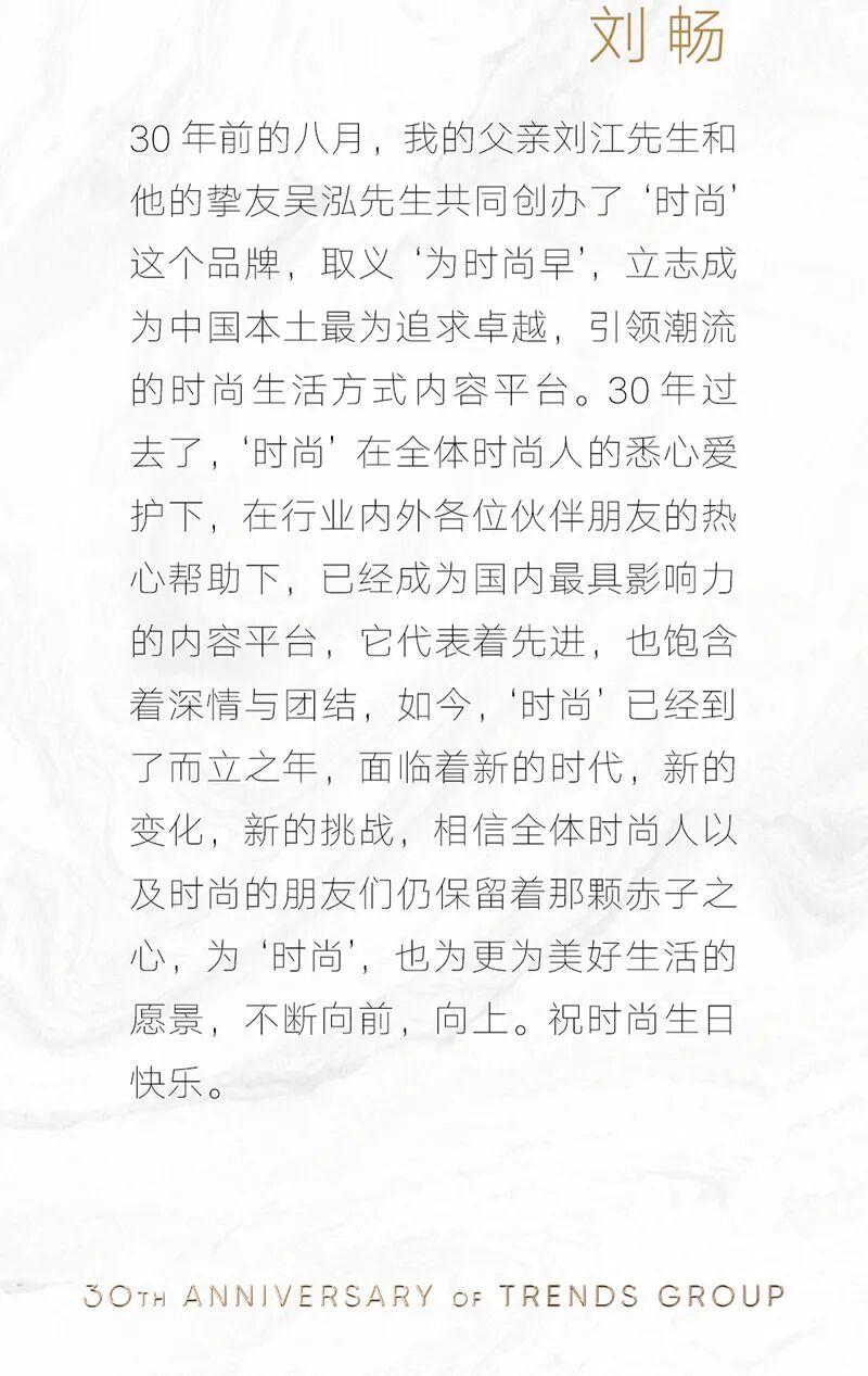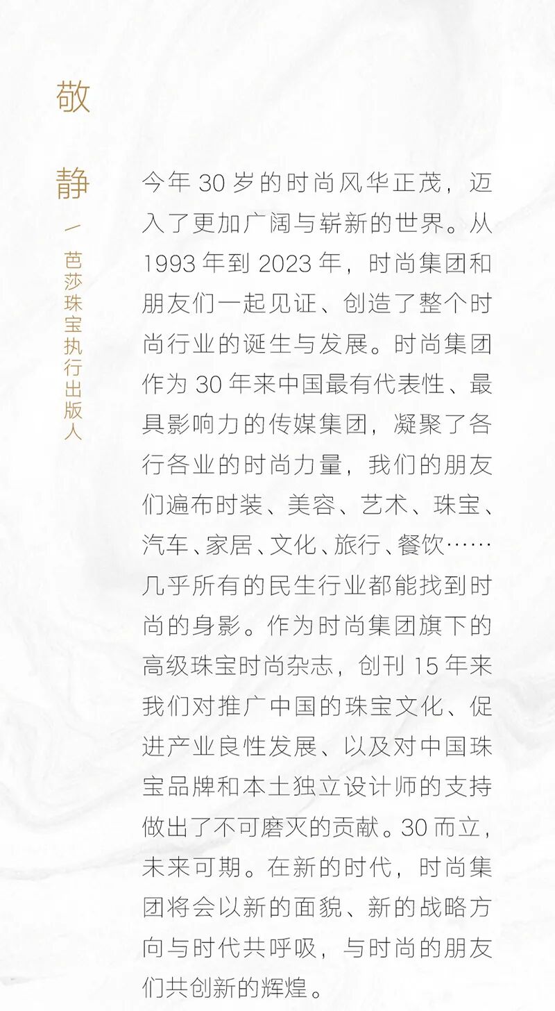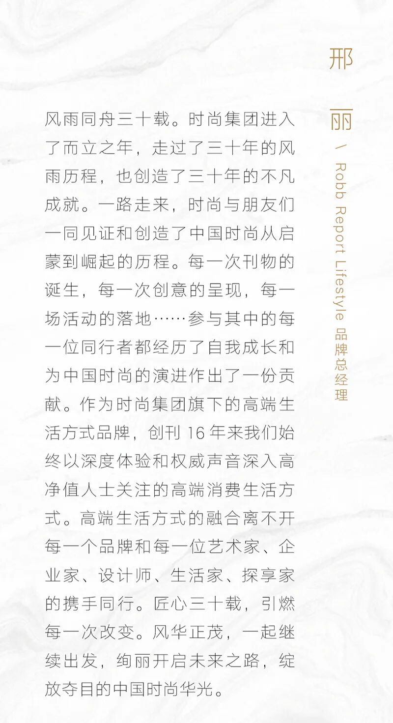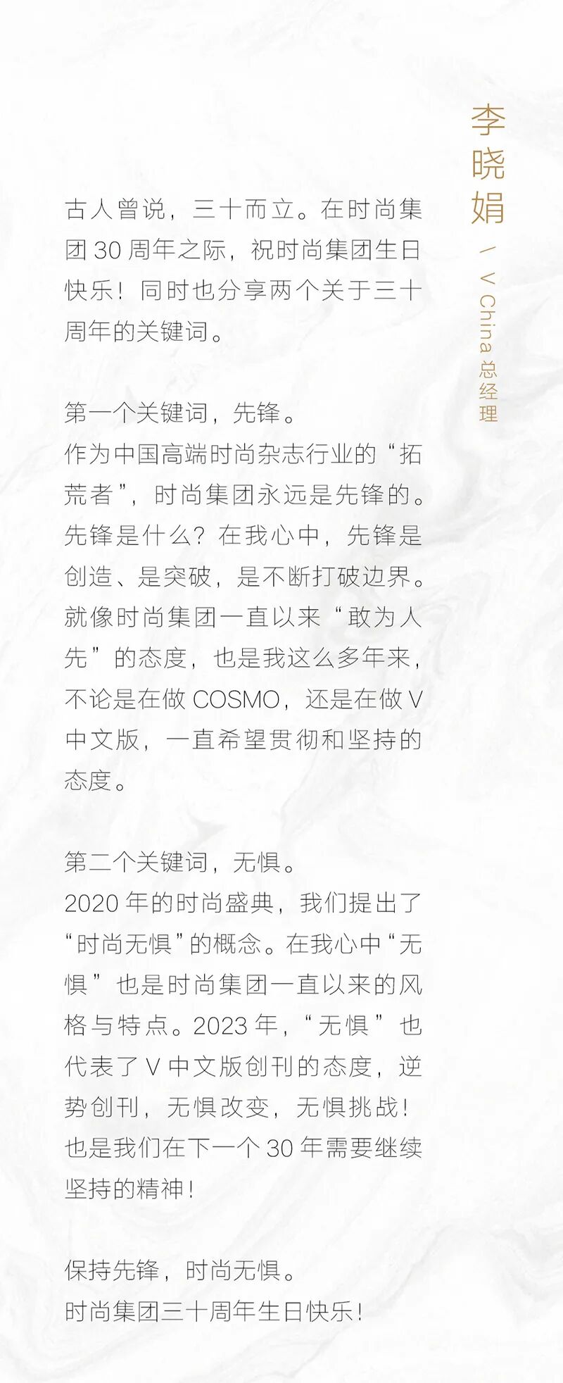 在共庆时尚30周年之际,时尚集团高层管理人员、各品牌第一负责人也直抒胸臆,写下了对时尚30年的寄语,回顾时尚的成长,寄望时尚的明天。
