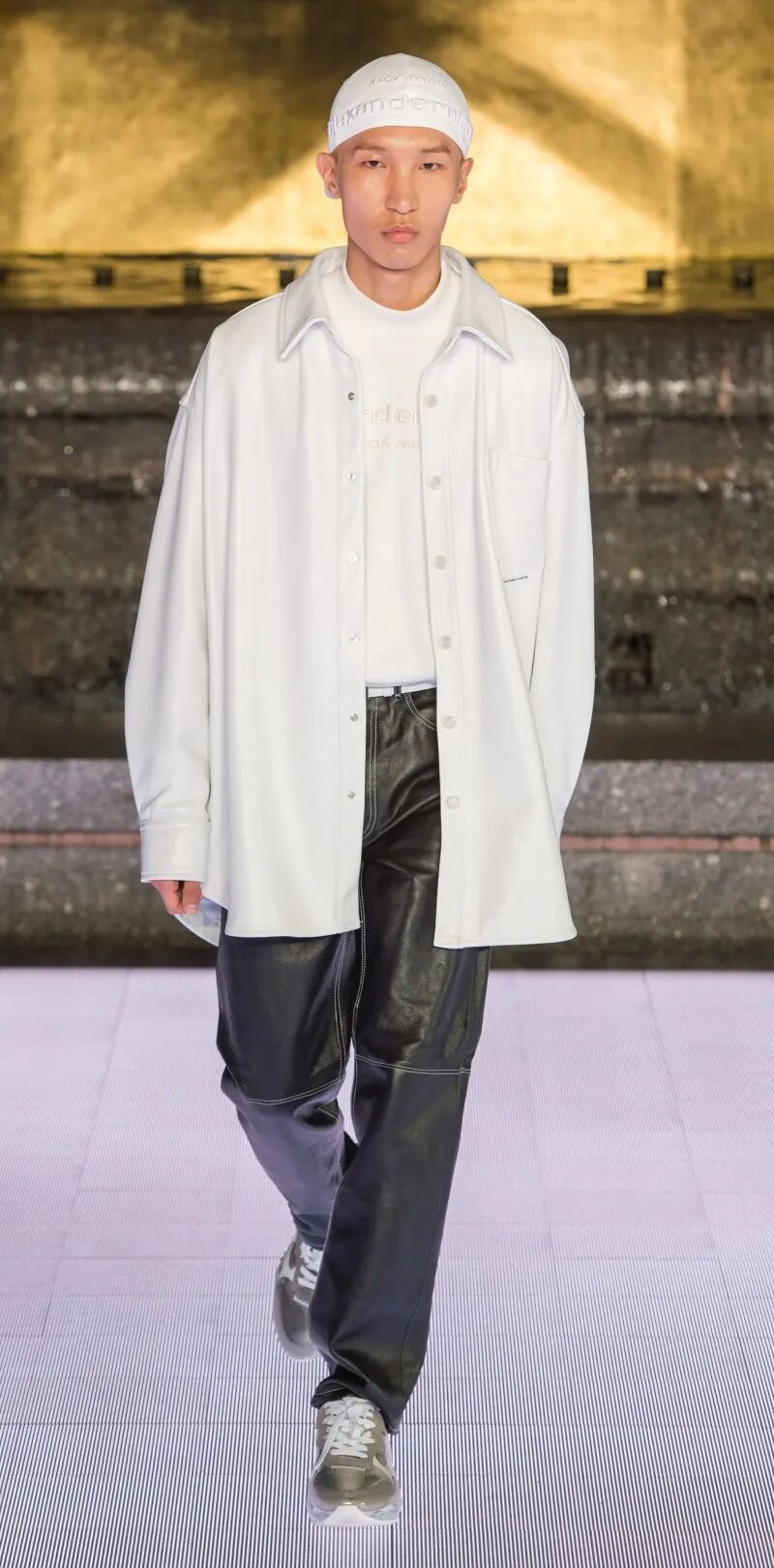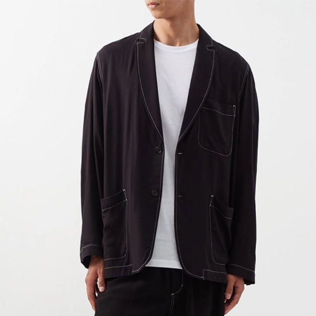 这件CDLP“西装外套”由轻质粘胶材质制成,顶部用白色缝线标记,介于不规则的运动外套和燕尾服T恤之间。然而,它可以搭配同款的裤子提升到全套西装的地位。