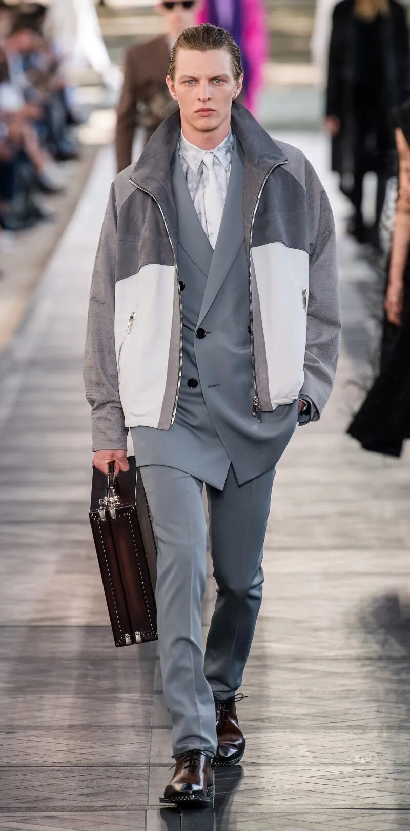其实解构剪裁已经伴随我们一个多世纪了。它的起源可以追溯到19世纪末大学赛艇队所穿的运动夹克,这种夹克没有填充物,只是作为运动热身装备。20世纪初,那不勒斯的裁缝们在萨维尔街式西装的设计基础上进行了修改,去掉了僵化的部分,制作出更柔软、更轻便的夹克,更适合地中海气候,这也是许多意大利品牌一直沿用至今的风格。