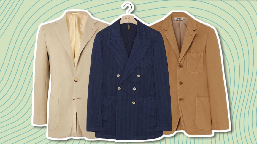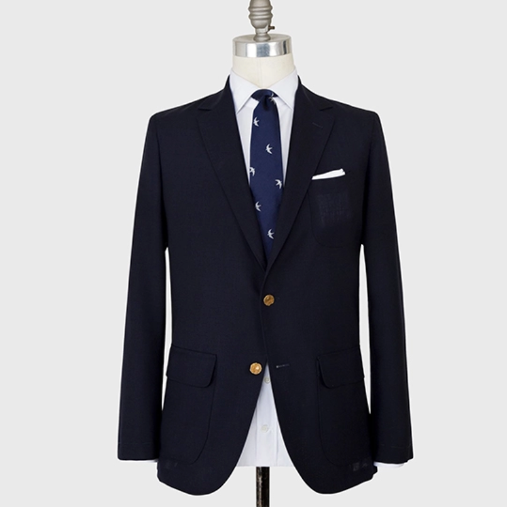 经典的蓝色西装外套可能会有点沉闷,除非把里面的填充物拿掉。Sid Mashburn的Ghost西装采用了常春藤风格,前面没有装饰,只有一个补丁口袋,但用的是重量轻、高捻的羊毛,完全没有结构和衬里。