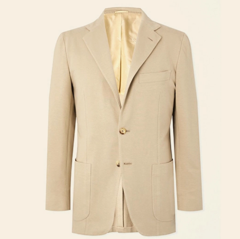 这件来自那不勒斯传奇裁缝Kiton的解构外套和其他夹克一样精致,但是没有填充物。弹性、棉混纺针织面料体现了其更轻松的氛围感。