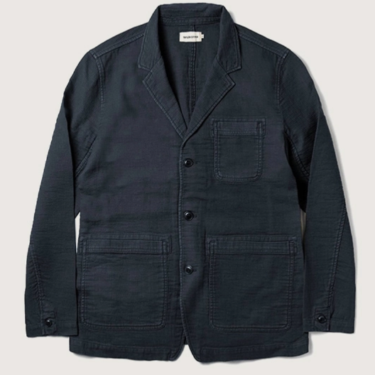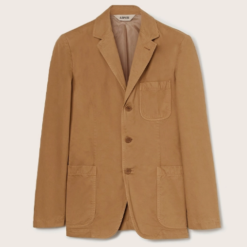 在某些情况下,一种足够坚固的织物可以代替夹克硬挺的面料。Aspesi的Murakami夹克就是一个例子,它由一种重量级的服装染色棉华达呢制成,经过石磨处理后,给人一种居家的感觉。