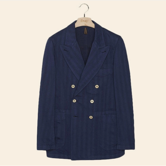 Drake的Games运动夹克系列摒弃了传统设计,引入了工装风格,打造出了一种休闲风格。make III可能是最有趣的款式,因为它将宽松剪裁和实用口袋与双排扣结合在一起,整体由海军蓝的棉亚麻材料裁剪而成。