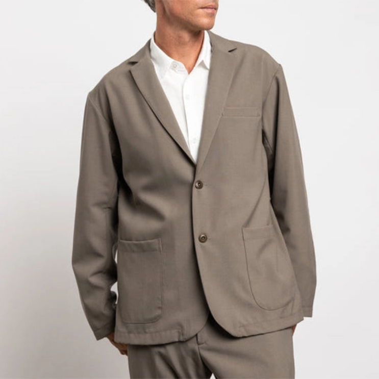 Smock这款极简的热带重灰褐色西装外套借鉴了David Byrne的设计,但它去掉了超大的垫肩,取而代之的是柔软的剪裁。搭配同款裤子,绝对是一套适合通勤的休闲西装。