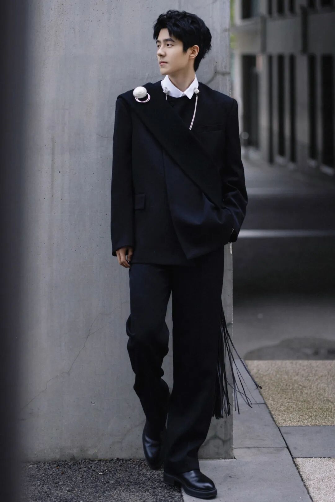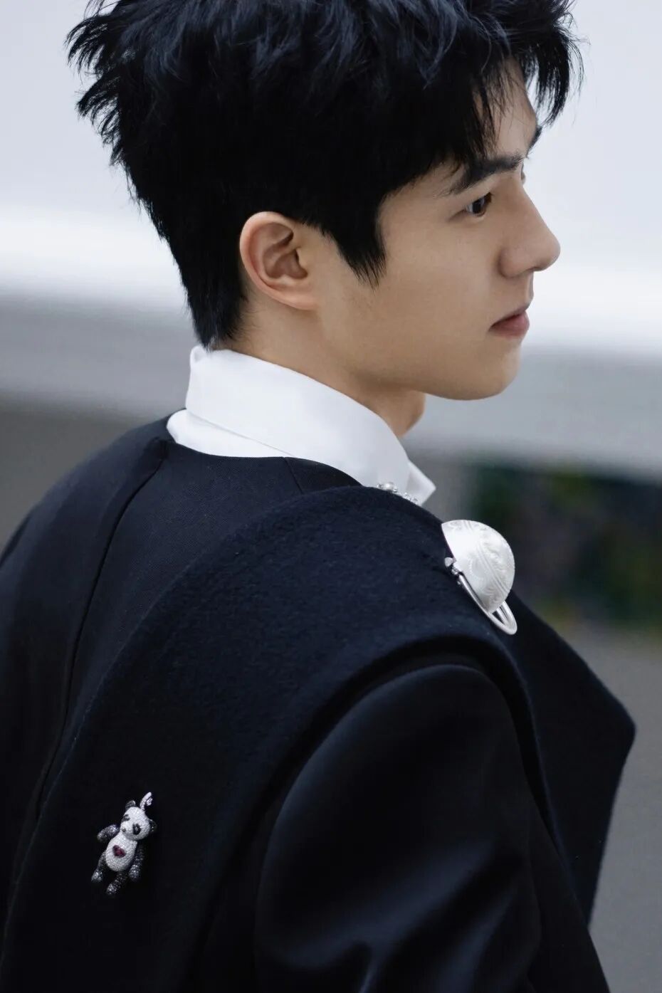 SEAN SUEN 2023秋冬男装的套装装饰细节非常丰富,刘昊然还特意在背后别上了Qeelin的Bo Bo熊猫珠宝。