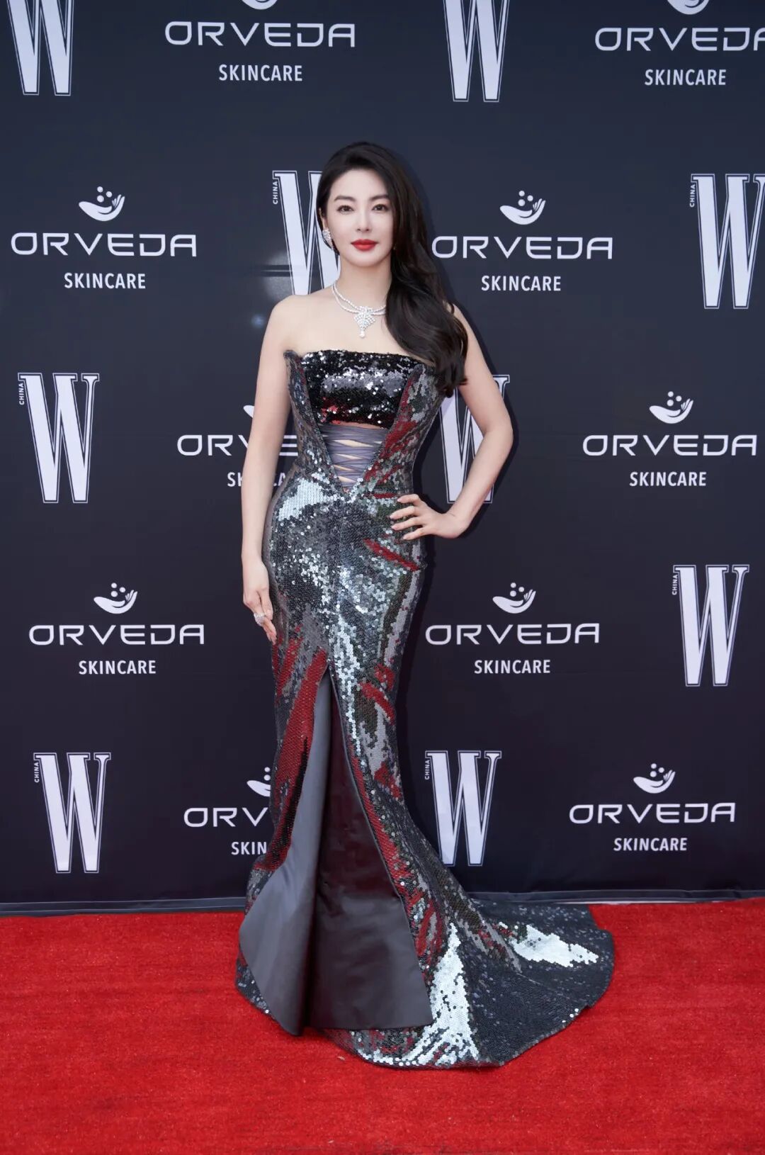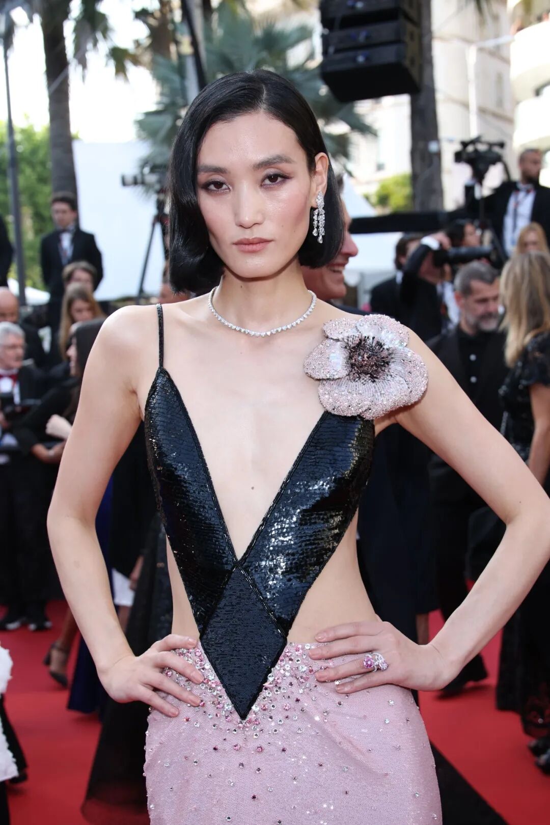 同样靠珠宝搭配赢很大的还有超模张丽娜,她穿的Armani Privè 2023春夏高定礼服对身材要求超高,多一点肉都穿不出这个效果,搭配了萧邦高级珠宝,性感的高级而克制。