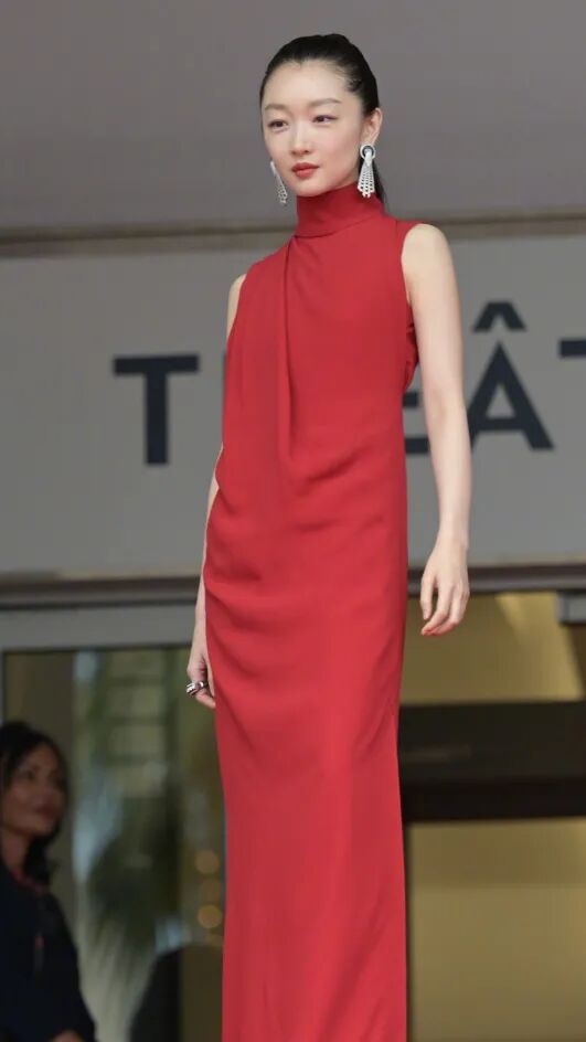 在Photocall上她穿着来自中国设计师品牌SHUSHU/TONG的礼服,设计简约、甜而不腻,在外媒中好评度很高。