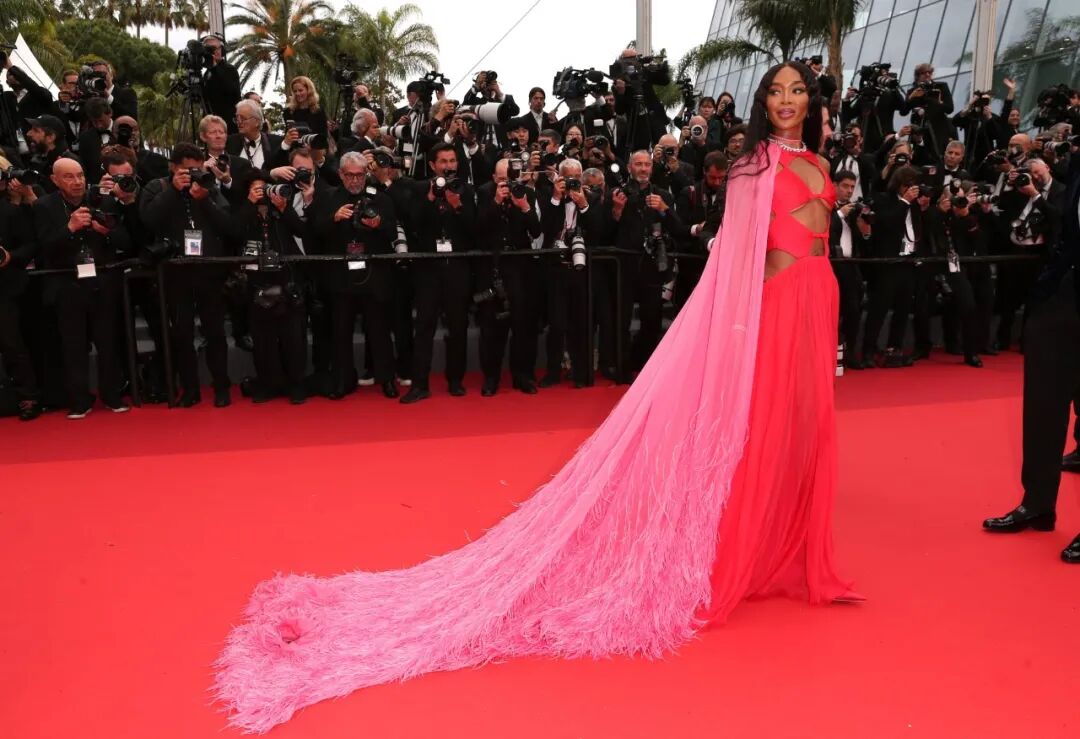 老牌超模娜奥米·坎贝尔(Naomi Campbell)的红毯look,再次证明了“宝刀未老”。不但身材管理优秀,没有一丝赘肉,而且气场强大,穿Valentino 2023春夏系列粉红羽毛礼服走红毯,跟走秀一样气定神闲。