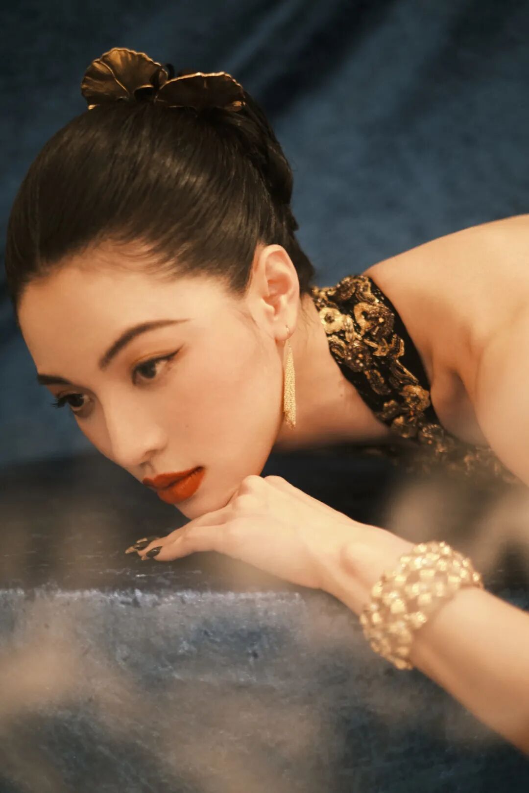 与之搭配的珠宝也是复古路线,耳环来自Tiffany Elsa Peretti系列,手镯则是Tiffany Schlumberger系列,跟黑金礼服搭在一起很有民国美人的腔调。
