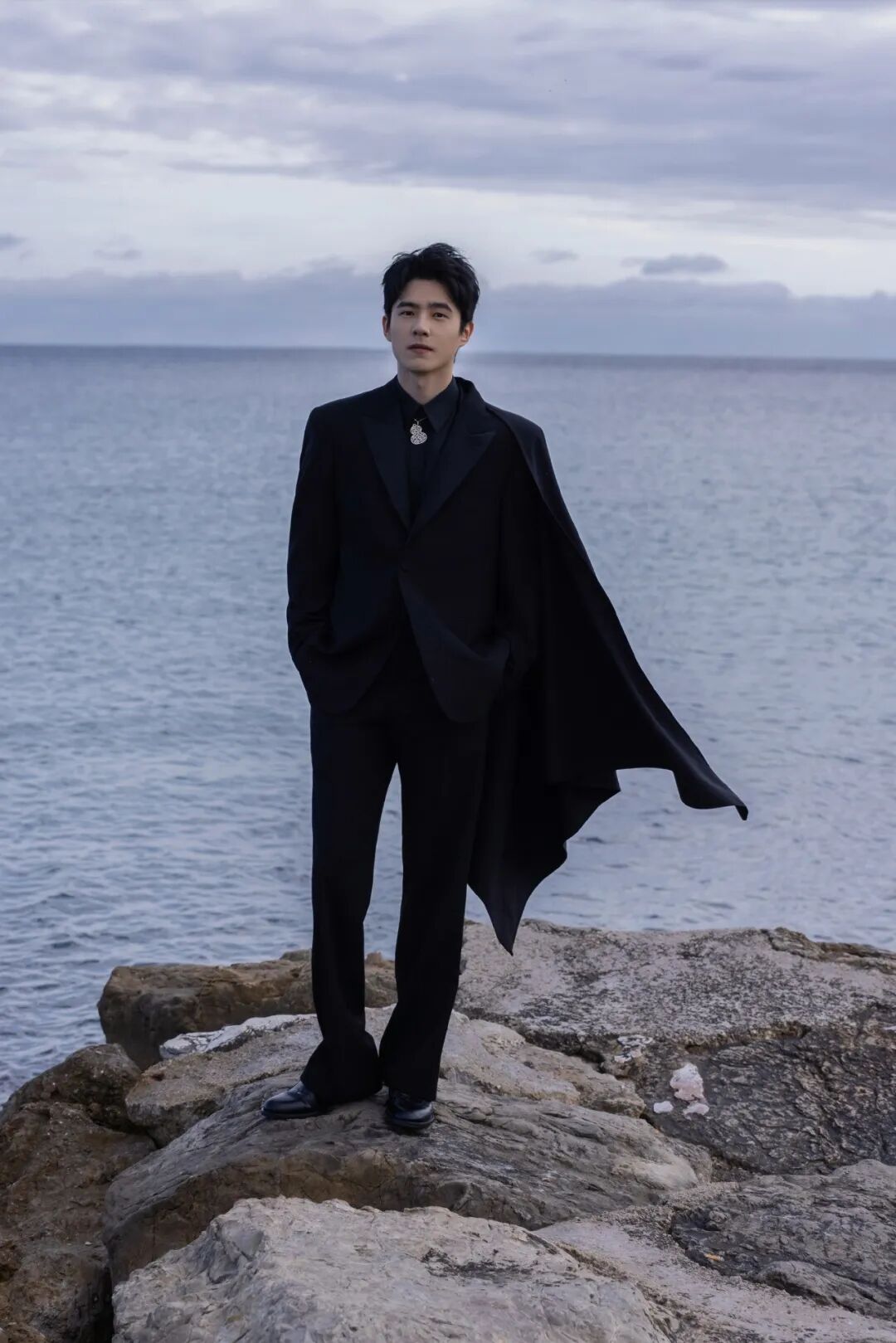 朱一龙带着作品《河边的错误》来到戛纳,红毯上选择了比较符合Black Tie的传统黑色西服套装,来自Louis Vuitton定制。