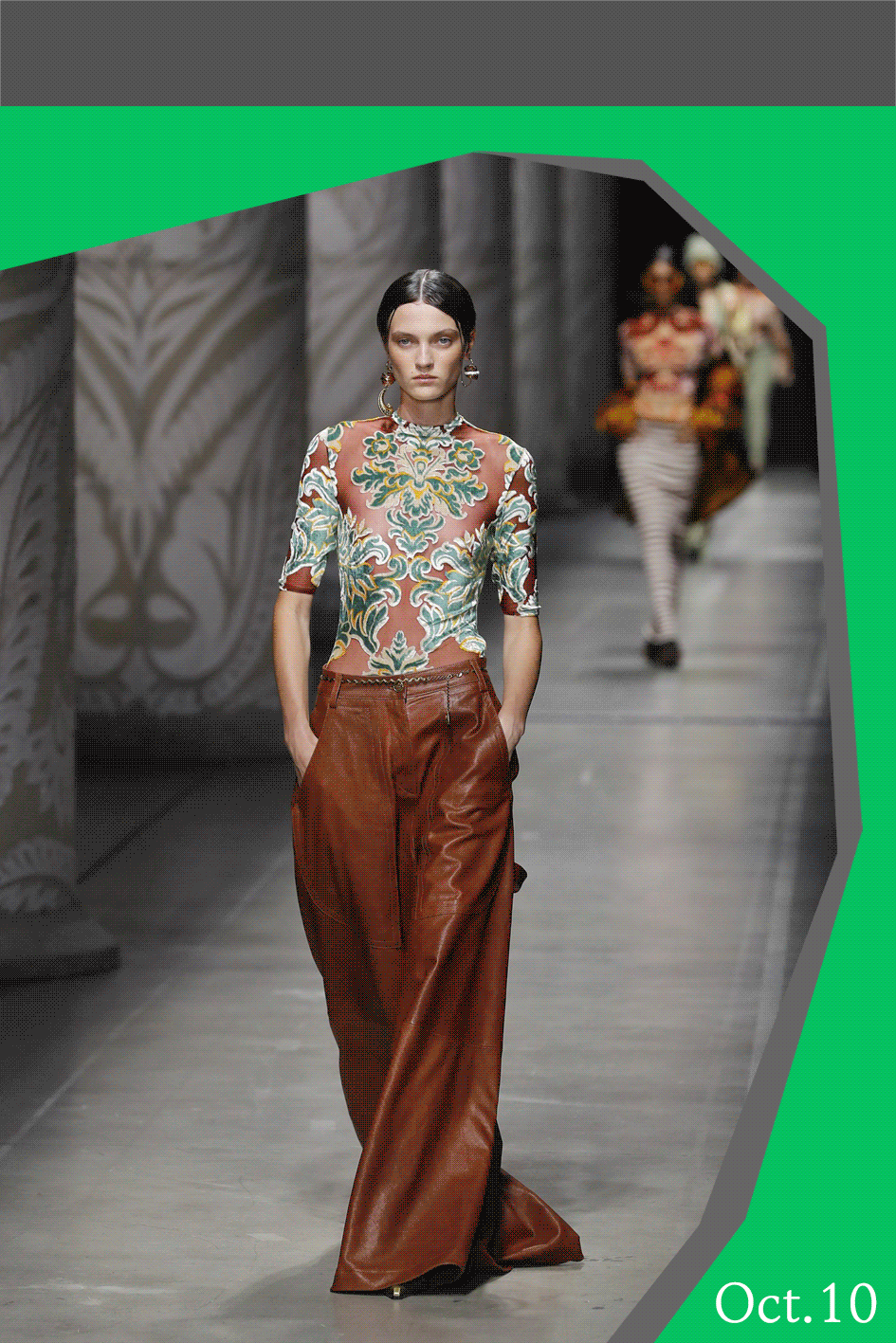 Sabato De Sarno想要让Gucci回归街头,所有选在米兰的布雷拉区举办时装展。预测会下雨,所以他的时装秀首次在室内举行,但这并没有减弱他的创意氛围。