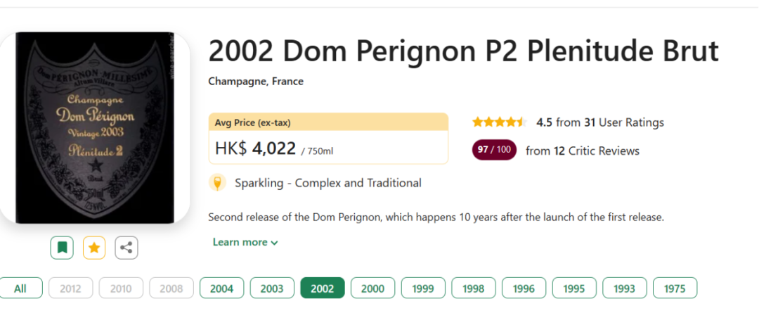 这时候你需要判断:该酒款是否有均价。如果没有,它大概率是贴牌酒,因为几乎所有的知名葡萄酒都会有无数经销商和二级经销,他们中总会有人将这些价格上传到wine-searcher网站。因此如果没有均价,无论酒产自哪里,它大概率都是贴牌酒(当然以法国为主),这种酒很多是通过散装进口的,这类酒款基本不可能具备陈年的能力;如果你发现酒有均价,并且还有很多年份,那么你要做的就很简单了——比较每个年份之间的价格。